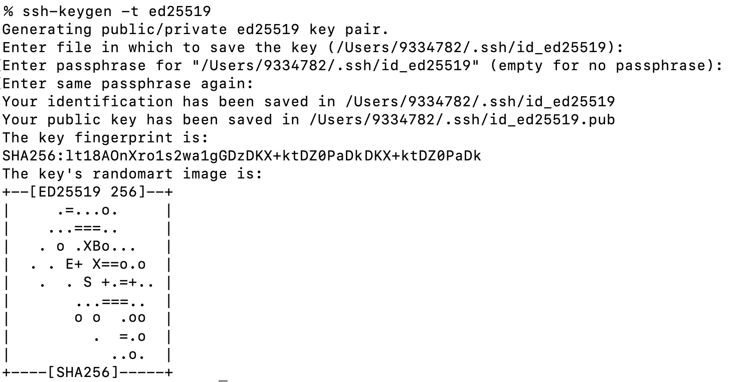 Note the location where the “id_ed25519.pub” and “id_ed25519” files are created on your device
